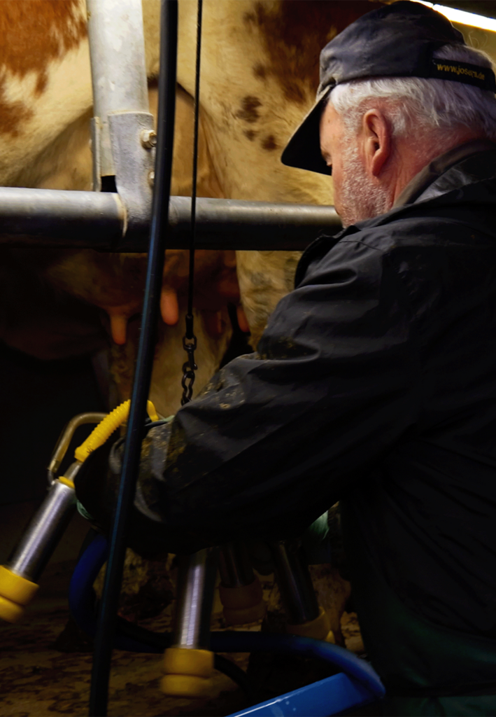 In der Produktion zählt Erfahrung. Vom Erwärmen der Milch über das Schneiden der Gallerte bis zur Reifung achten wir auf jeden Schritt. Wir verzichten auf künstliche Zusatzstoffe, Aromen und Stabilisatoren. So bleibt der Geschmack klar und die Textur natürlich. Die Zusammenarbeit mit dem Abstreiter Hof bedeutet Vertrauen. Wir kennen die Tiere, die Menschen und die Haltung dahinter. Unsere Qualität entsteht auf der Wiese, im Stall und in unserer Käserei. Sie ist das Ergebnis von Leidenschaft, Nähe und Verantwortung für Produkte und Region.